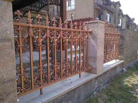 7.上鍍劑:再次清洗工件表面,確保工件鍍鋅前沒有銹蝕。,  現貨市政鋅鋼護欄主要是用于城市道路的隔離護欄產品,該高度一般:60厘米、 80厘米、 1 米、 1.2米。,  6.別墅大門工件表面的酸水和其他附屬物的清洗、去除。,  有色鋁工藝院門,因其更具美感,而且其使用、觀賞性較高,因而受到人們的普遍歡迎。鋁箔的著色除了外觀美觀、起到裝飾作用外,還可提高鋁箔的耐磨損、耐腐蝕性能,從而發展出新的著色技術。,  鋅鋼護欄經過工藝的處理之后在防銹方面也非常出色,因它的材料價格比鋁合金低,因此它的性價比高,在大型的工程項目方面一般都會采用鋅鋼護欄,鋁合金護欄一般使用在家庭安裝及別墅里面使用。,  鋁藝門漆施工注意事項