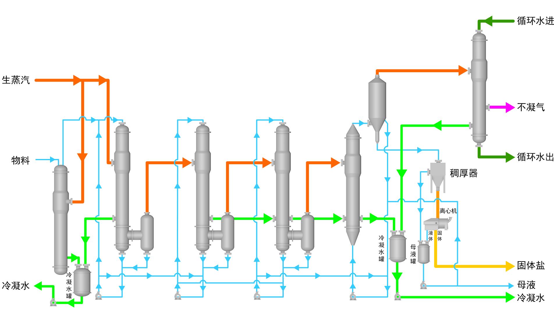 高能效:多效蒸發結晶產品可以實現多次利用蒸汽的熱能,大幅度降低能源消耗,節約成本。